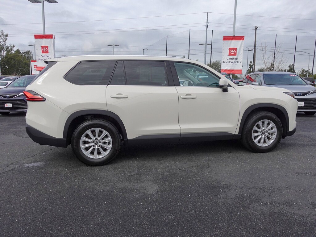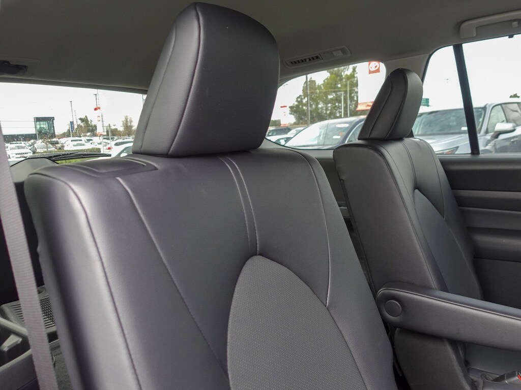 18" Aluminum Alloy Wheels, 3rd row seats: split-bench, 4-Wheel Disc Brakes, 6 Speakers, ABS brakes, Air Conditioning, Alloy wheels, AM/FM radio: SiriusXM, Apple CarPlay/Android Auto, Auto High-beam Headlights, Auto-dimming Rear-View mirror, Automatic temperature control, Brake assist, Bumpers: body-color, Delay-off headlights, Driver door bin, Driver vanity mirror, Dual front impact airbags, Dual front side impact airbags, Electronic Stability Control, Emergency communication system: Safety Connect (up to 10-year trial subscription), Exterior Parking Camera Rear, Four wheel independent suspension, Front anti-roll bar, Front Bucket Seats, Front Center Armrest, Front dual zone A/C, Front reading lights, Fully automatic headlights, Garage door transmitter: HomeLink, Heated door mirrors, Heated Front Seats, Heated front seats, Illuminated entry, Knee airbag, Leather Shift Knob, Leather steering wheel, Low tire pressure warning, Navigation system: Drive Connect Cloud Navigation (1-year trial subscription), Occupant sensing airbag, Outside temperature display, Overhead airbag, Overhead console, Panic alarm, Passenger door bin, Passenger vanity mirror, Power door mirrors, Power driver seat, Power Liftgate, Power passenger seat, Power steering, Power windows, Radio: 12.3" Toyota Audio Multimedia, Rear air conditioning, Rear anti-roll bar, Rear reading lights, Rear window defroster, Rear window wiper, Reclining 3rd row seat, Remote keyless entry, Security system, SofTex Seat Trim, Speed control, Speed-sensing steering, Split folding rear seat, Spoiler, Steering wheel mounted audio controls, TBD Axle Ratio, Telescoping steering wheel, Tilt steering wheel, Traction control, Trip computer, Turn signal indicator mirrors, Variably intermittent wipers.