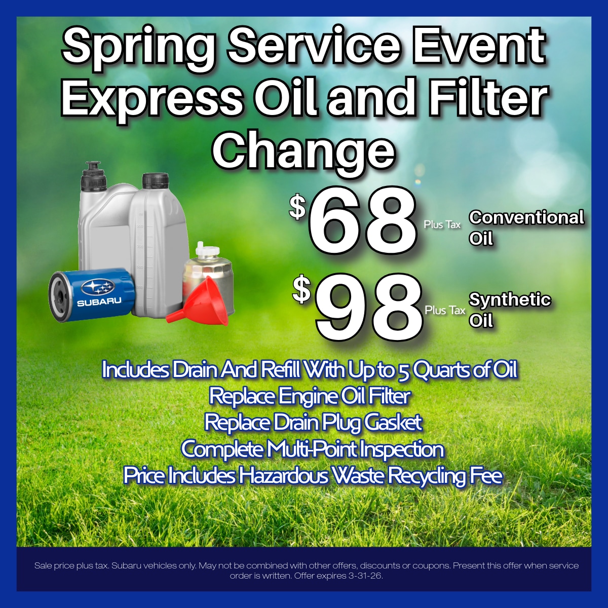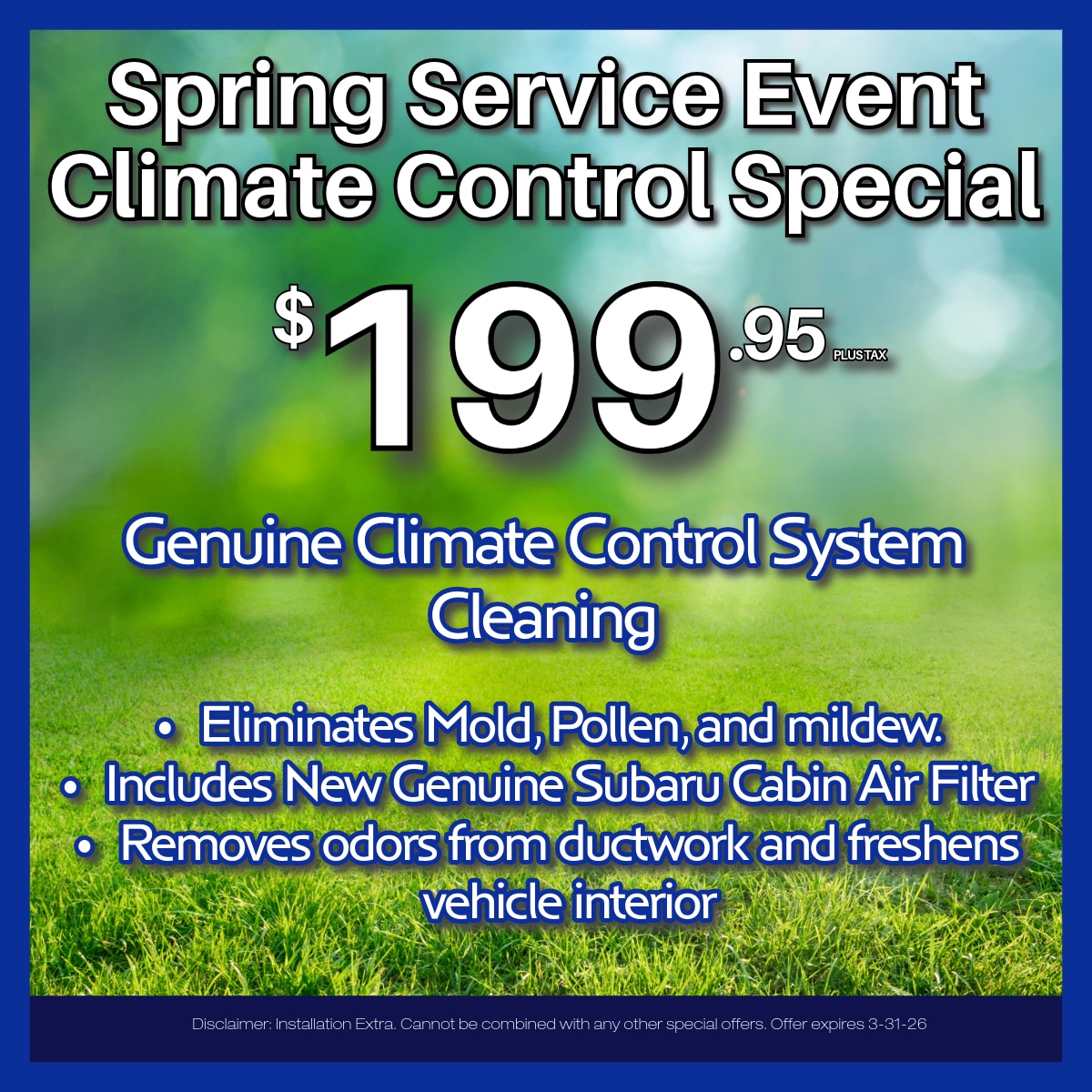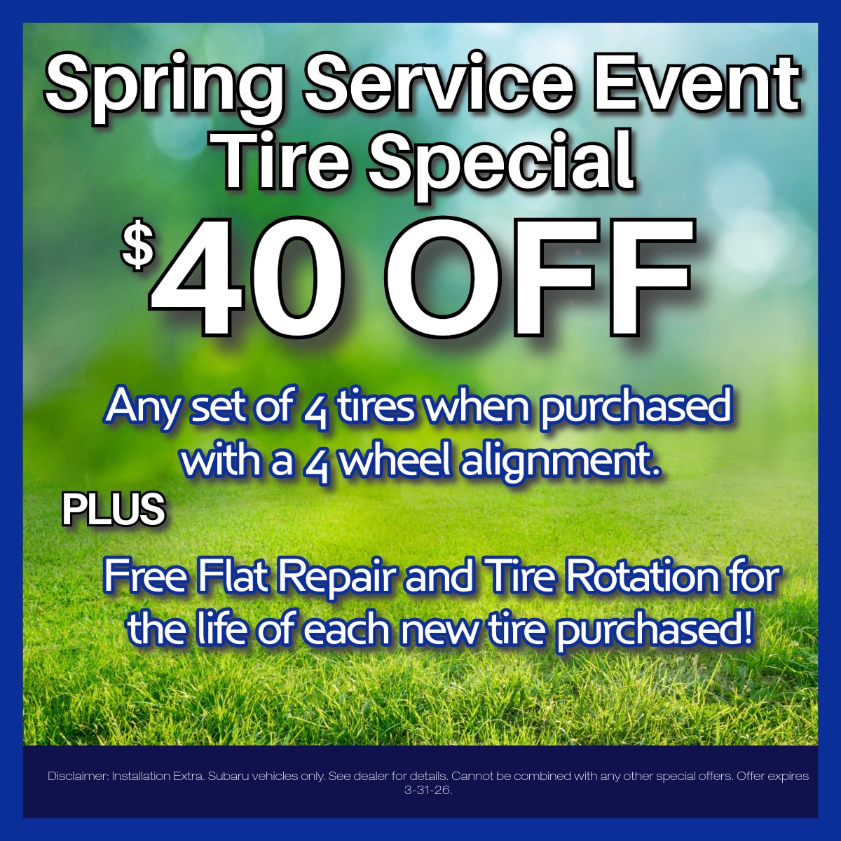 - Appearance Enhancements: Want to give your Subaru a unique and stylish look? Our specials frequently feature deals on appearance-enhancing accessories like spoilers, alloy wheels, and trim kits. Customize your Subaru's appearance and stand out on the road.