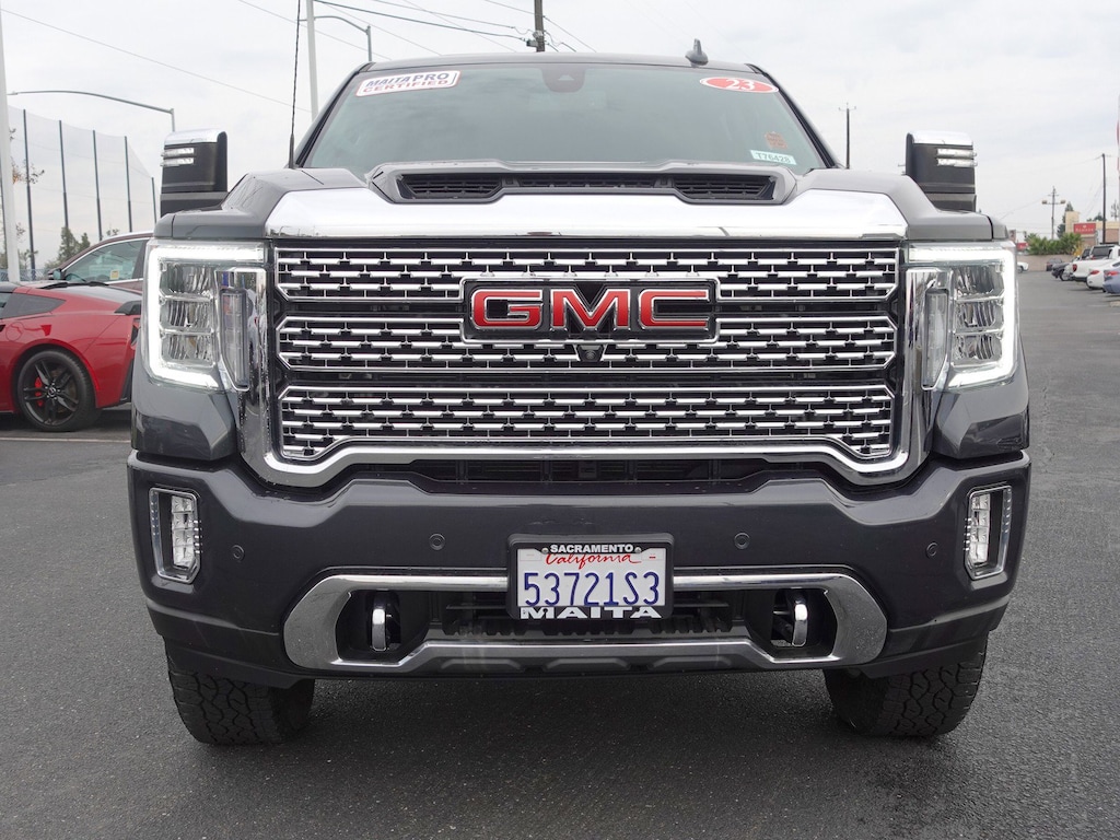 10-Way Power Driver Seat Adjuster w/Lumbar, 10-Way Power Passenger Seat Adjuster w/Lumbar, 12-Volt Rear Auxiliary Power Outlet, 120-Volt Bed Mounted Power Outlet, 120-Volt Instrument Panel Power Outlet, 2 USB Ports, 2 USB Ports (1st Row), 2-Speed Active Transfer Case, 220 Amps Alternator, 2nd Row Dual USB Charge-Only Ports, 4-Wheel Disc Brakes, 6" Rectangular Chromed Tubular Assist Steps, 7 Speakers, ABS brakes, Air Conditioning, Alloy wheels, AM/FM radio: SiriusXM with 360L, Apple CarPlay/Android Auto, Auto High-beam Headlights, Auto-dimming door mirrors, Auto-dimming Rear-View mirror, Automatic Emergency Braking, Automatic temperature control, Bed View Camera w/2 Trailer Camera Provisions, Bose Premium 7 Speaker Sound System, Brake assist, Bumpers: body-color, Compass, Compass Located In Instrument Cluster, Deep-Tinted Glass, Delay-off headlights, Driver Alert Package I, Driver Alert Package II, Driver door bin, Driver Memory, Driver vanity mirror, Dual front impact airbags, Dual front side impact airbags, Electric Rear-Window Defogger, Electrical Lock Control Steering Column, Electronic Stability Control, Emergency communication system: OnStar and GMC connected services capable, Engine Block Heater, Exhaust Brake, Exterior Parking Camera Rear, Floor-Mounted Center Console, Following Distance Indicator, Forge Perforated Leather-Appointed Front Seat Trim, Forward Collision Alert, Front anti-roll bar, Front Bucket Seats, Front Center Armrest, Front Chrome Recovery Hooks, Front dual zone A/C, Front fog lights, Front License Plate Kit, Front reading lights, Front wheel independent suspension, Fully automatic headlights, Garage door transmitter, Genuine wood console insert, Genuine wood door panel insert, GMC Connected Access Capable, Gooseneck/5th Wheel Prep Package, HD Surround Vision w/2 Trailer View Camera Provisions, Heated & Ventilated Front Bucket Seats, Heated 2nd Row Outboard Seats, Heated door mirrors, Heated Driver & Front Outboard Passenger Seats, Heated front seats, Heated rear seats, Heated steering wheel, Heavy-Duty 80 Amp Battery, Hill Descent Control, Hitch Guidance w/Hitch View, Illuminated entry, In-Vehicle Trailering System App, Integrated Trailer Brake Controller, IntelliBeam Automatic High Beam On/Off, Keyless Open & Start, Lane Change Alert w/Side Blind Zone Alert, Lane Departure Warning System, LED Cargo Area Lighting, LED Smoked Amber Roof Marker Lamps, Low tire pressure warning, Manual Tilt-Wheel/Telescoping Steering Column, Memory seat, Navigation System, Occupant sensing airbag, Off-Road Suspension, OnStar & GMC Connected Services Capable, Outside temperature display, Overhead airbag, Overhead console, Panic alarm, Passenger door bin, Passenger vanity mirror, Pickup Box, Polished Exhaust Tip, Power Door Locks, Power door mirrors, Power driver seat, Power Front Passenger Windows w/Express Up/Down, Power passenger seat, Power Rear Windows w/Express Down, Power Sliding Rear Window w/Defogger, Power steering, Power Sunroof, Power windows, Power Windows w/Driver Express Up/Down, Power-Retractable Assist Steps, Preferred Equipment Group 5SA, Premium audio system: Premium GMC Infotainment System, Radio: AM/FM w/Prem GMC Infotainment System & Navi, Rear Cross Traffic Alert, Rear reading lights, Rear seat center armrest, Rear step bumper, Rear Wheelhouse Liners, Rear window defroster, Remote keyless entry, Remote Vehicle Starter System, Safety Alert Seat, Security system, Signature Denali Grille, SiriusXM w/360L, Speed control, Speed-sensing steering, Split folding rear seat, Spray-On Pickup Box Bed Liner w/Denali Logo, Steering Wheel Audio Controls, Steering wheel mounted audio controls, Tachometer, Telescoping steering wheel, Tilt steering wheel, Traction control, Trip computer, Turn signal indicator mirrors, Ultrasonic Front & Rear Park Assist, Unauth