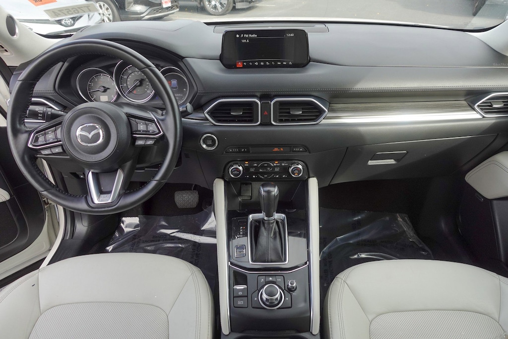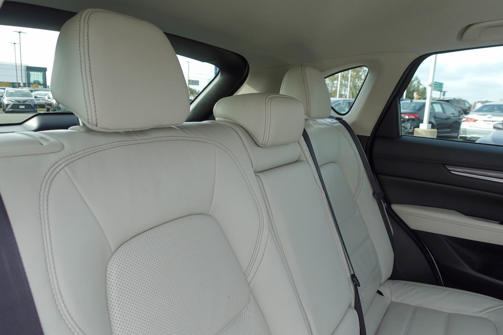 10 Speakers, 19 x 7J Aluminum Alloy Wheels, 2 Position Drivers Seat Memory, 4-Wheel Disc Brakes, 4.62 Axle Ratio, 6-Way Power Adjustable Passenger Seat, ABS brakes, Active Driving Display (Windshield Type), Air Conditioning, Alloy wheels, AM/FM radio: SiriusXM, Auto High-beam Headlights, Auto-dimming Rear-View mirror, Automatic temperature control, Bose 10-Speaker Audio Sound System, Brake assist, Bumpers: body-color, Delay-off headlights, Driver door bin, Driver vanity mirror, Dual front impact airbags, Dual front side impact airbags, Electronic Stability Control, Emergency communication system, Exterior Parking Camera Rear, Four wheel independent suspension, Front anti-roll bar, Front Bucket Seats, Front Center Armrest, Front dual zone A/C, Front fog lights, Front reading lights, Fully automatic headlights, Garage door transmitter: Homelink, Heated door mirrors, Heated front seats, Heated Front Sport Shape Seats, Heated Rear Seats, Heated Steering Wheel, Illuminated entry, Leather Seat Trim, Leather Shift Knob, Low tire pressure warning, Mazda Navigation System, Navigation System, Occupant sensing airbag, Outside temperature display, Overhead airbag, Overhead console, Panic alarm, Passenger door bin, Passenger vanity mirror, Power door mirrors, Power driver seat, Power Liftgate, Power moonroof, Power steering, Power windows, Premium Package, Radio data system, Radio: AM/FM/HD Modular Audio System w/Bose, Rain sensing wipers, Rear anti-roll bar, Rear Bumper Guard, Rear Parking Sensors, Rear reading lights, Rear seat center armrest, Rear window defroster, Rear window wiper, Remote keyless entry, Retractable Cargo Cover, Roof Rack Side Rails, Slowflake White Pearl Mica Paint, Speed control, Speed-sensing steering, Split folding rear seat, Spoiler, Steering wheel mounted audio controls, Tachometer, Telescoping steering wheel, Tilt steering wheel, Traction control, Trip computer, Turn signal indicator mirrors, Variably intermittent wipers, Wheel Locks, Windshield Wiper De-Icer.