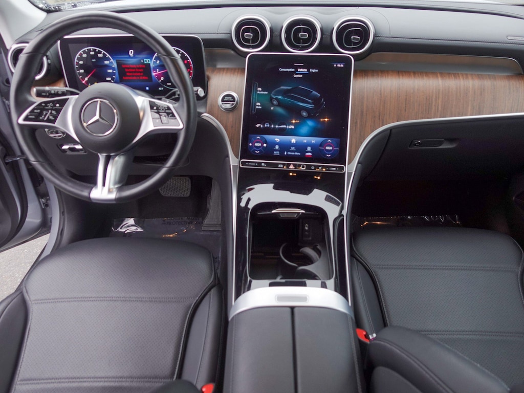 11.9" Center Touchscreen Display, 16-Way Power Front Seats w/Memory/Lumbar/Thigh Ext, 18" 10-Spoke Wheels, 3 USB C-Ports, 4-Way Power Lumbar Support, 4-Wheel Disc Brakes, 8 Speakers, ABS brakes, Air Conditioning, Alloy wheels, AM/FM radio, Apple CarPlay®/Android Auto®, Auto High-beam Headlights, Auto tilt-away steering wheel, Auto-dimming Rear-View mirror, Automatic temperature control, Brake assist, Bumpers: body-color, Child-Seat-Sensing Airbag, Compass, Delay-off headlights, Driver door bin, Driver vanity mirror, Dual front impact airbags, Dual front side impact airbags, Electronic Stability Control, Emergency communication system: eCall Emergency System, Exterior Parking Camera Rear, Four wheel independent suspension, Front anti-roll bar, Front Bucket Seats, Front Center Armrest, Front dual zone A/C, Front reading lights, Fully automatic headlights, Garage door transmitter: HomeLink, Genuine wood dashboard insert, HD Radio, Head restraints memory, Heated door mirrors, Heated Front Bucket Seats, Heated front seats, Illuminated entry, Inductive Wireless Charging, Knee airbag, Leather steering wheel, Low tire pressure warning, MB-Tex Upholstery, MBUX Intelligent Vehicle Assistant (Hey Mercedes), Memory seat, Occupant sensing airbag, Outside temperature display, Overhead airbag, Overhead console, Panic alarm, Passenger door bin, Passenger vanity mirror, Power adjustable front head restraints, Power door mirrors, Power driver seat, Power Liftgate, Power passenger seat, Power steering, Power windows, Radio data system, Rain sensing wipers, Rear anti-roll bar, Rear fog lights, Rear reading lights, Rear seat center armrest, Rear window defroster, Rear window wiper, Remote keyless entry, Security system, Speed control, Speed-sensing steering, Split folding rear seat, Spoiler, Steering wheel memory, Steering wheel mounted audio controls, Tachometer, TBD Axle Ratio, Telescoping steering wheel, Tilt steering wheel, Traction control, Trip computer, Turn signal indicator mirrors, Variably intermittent wipers, Wireless Android Auto®, Wireless Apple CarPlay®.