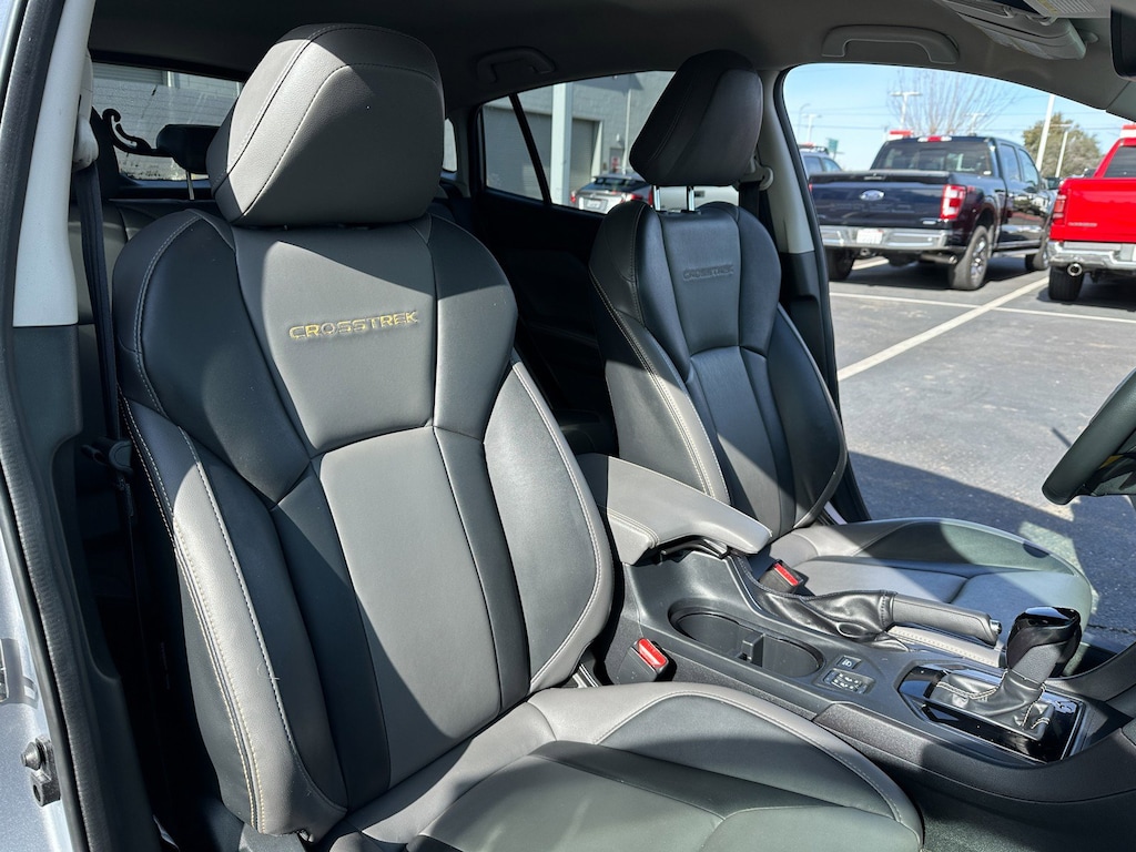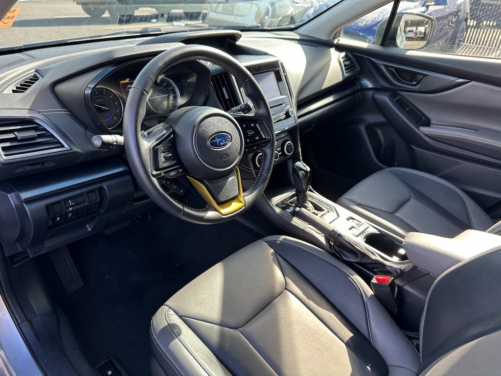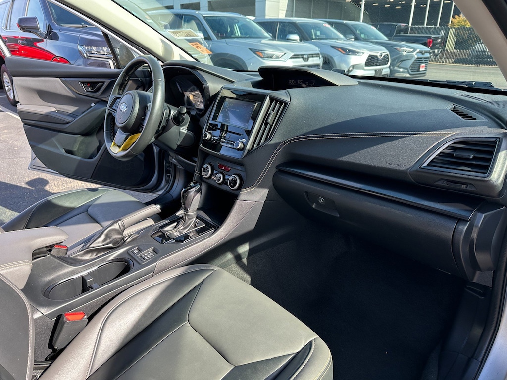 3.70 Axle Ratio, 4-Wheel Disc Brakes, 6 Speakers, ABS brakes, Air Conditioning, Alloy wheels, AM/FM radio: SiriusXM, Anti-whiplash front head restraints, Automatic temperature control, Brake assist, Bumpers: body-color, CD player, Driver door bin, Driver vanity mirror, Dual front impact airbags, Dual front side impact airbags, Electronic Stability Control, Emergency communication system: STARLINK Safety and Security (Subscription Required), Exterior Parking Camera Rear, Four wheel independent suspension, Front anti-roll bar, Front Bucket Seats, Front Center Armrest, Front fog lights, Front reading lights, Fully automatic headlights, Heated door mirrors, Heated Front Bucket Seats, Heated front seats, Illuminated entry, Knee airbag, Leather Shift Knob, Low tire pressure warning, Occupant sensing airbag, Outside temperature display, Overhead airbag, Overhead console, Panic alarm, Passenger door bin, Passenger vanity mirror, Power door mirrors, Power steering, Power windows, Radio data system, Radio: Subaru STARLINK 6.5" Multimedia Plus System, Rear anti-roll bar, Rear window defroster, Rear window wiper, Remote keyless entry, Security system, Speed control, Speed-sensing steering, Split folding rear seat, Spoiler, STARLINK/Apple CarPlay/Android Auto, StarTex Upholstery, Steering wheel mounted audio controls, Tachometer, Telescoping steering wheel, Tilt steering wheel, Traction control, Trip computer, Turn signal indicator mirrors, Variably intermittent wipers, Wheels: 17" x 7.0J Alum Alloy Dark Gray Met Finish.
