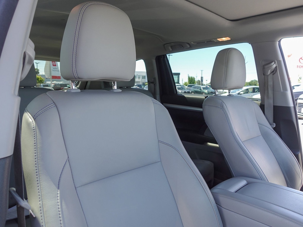 3rd row seats: split-bench, 4-Wheel Disc Brakes, 4.154 Axle Ratio, 6 Speakers, ABS brakes, Air Conditioning, Alloy wheels, AM/FM radio: SiriusXM, Auto-dimming Rear-View mirror, Automatic temperature control, Brake assist, Bumpers: body-color, CD player, Delay-off headlights, Driver door bin, Driver vanity mirror, Dual front impact airbags, Dual front side impact airbags, Electronic Stability Control, Exterior Parking Camera Rear, Four wheel independent suspension, Front anti-roll bar, Front Bucket Seats, Front Center Armrest, Front dual zone A/C, Front fog lights, Front reading lights, Fully automatic headlights, Garage door transmitter, Heated door mirrors, Heated front seats, Illuminated entry, Knee airbag, Leather Seat Material, Leather Shift Knob, Low tire pressure warning, Navigation System, Occupant sensing airbag, Outside temperature display, Overhead airbag, Overhead console, Panic alarm, Passenger door bin, Passenger vanity mirror, Power door mirrors, Power driver seat, Power Liftgate, Power moonroof, Power steering, Power windows, Radio: Entune Premium Audio w/Nav & App Suite, Rear air conditioning, Rear anti-roll bar, Rear reading lights, Rear window defroster, Rear window wiper, Reclining 3rd row seat, Remote keyless entry, Roof rack: rails only, Security system, Speed control, Speed-sensing steering, Split folding rear seat, Spoiler, Steering wheel mounted audio controls, Tachometer, Telescoping steering wheel, Tilt steering wheel, Traction control, Trip computer, Turn signal indicator mirrors, Variably intermittent wipers, Wheels: 18" Split 5-Spoke Machined-Face Alloy.